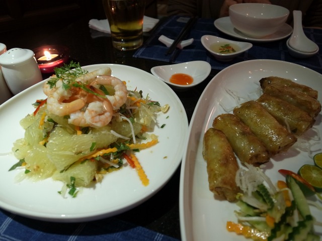 ポメロとエビのサラダと揚春巻。ハノイは揚春巻が主流で毎日こればかり食べていました…。お店によって皮の雰囲気が違うのが楽しかったです。